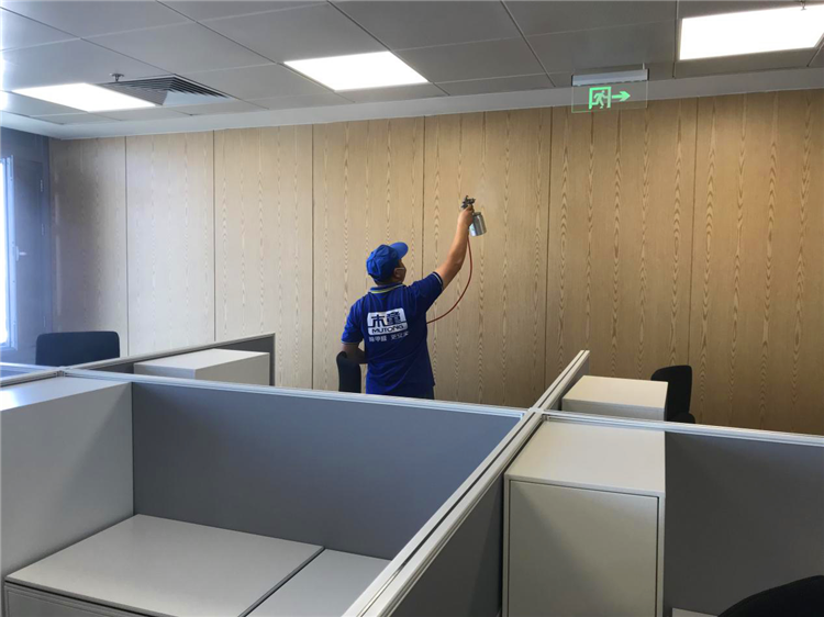 貴公司早在2015年與我司合作,對辦公室空氣污染進(jìn)行治理,今年公司擴(kuò)大規(guī)模,又新裝修一層辦公司,由于裝修比較高端,所用的板材數(shù)量較大,每間辦公室都是硬包式裝修,經(jīng)過CMA資質(zhì)公司檢測甲醛超標(biāo)嚴(yán)重,便再次請木童治理。